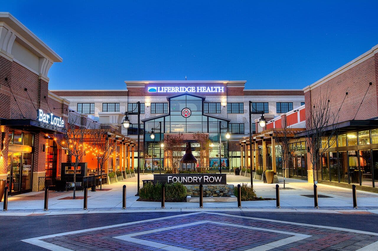 Foundry Row is an upscale, open-air shopping center featuring a Wegman’s Food Market.